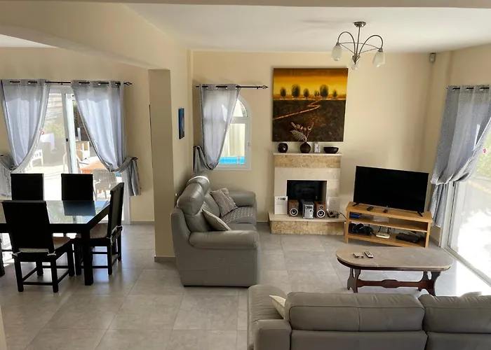 Die Villa liegt rund 25 Gehminuten vom Laourou Beach. Gelegen 7 km vom Kloster Agios Neophytos, ist die Villa Coralsunset Property Management Ltd bei Gläubigen und Touristen beliebt. Der Flughafen Paphos ist 36 Autominuten von der Unterkunft in Coral Bay entfernt.